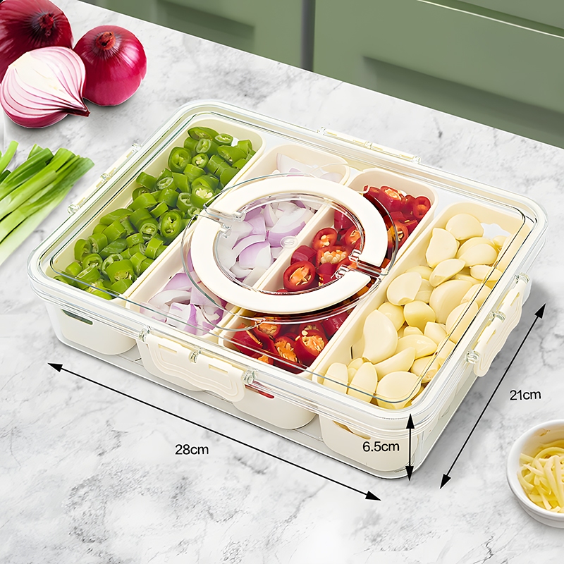 Sering kesel kan, baru beli sayuran udah layu duluan? Kotak 6 sekat ini didesain khusus buat menjaga kesegaran sayuran dan buah lebih lama. Tiap sekat punya ventilasi udara yang optimal, jadi kelembapan bisa diatur dan sayuran nggak gampang busuk. Bayangin deh, sayuran kamu tetap fresh kayak baru dipetik dari kebun! Asik, kan?